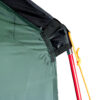 Все узлы, испытывающие повышенные нагрузки, усилены высокопрочной тканью. Край внешнего тента и край юбки обшиты прочной стропой, что значительно уменьшает риск порвать тент ветками и камнями. Стропа красного цвета, поэтому крайпалатки виден даже в сумерках и густой траве. Юбка по периметру палатки защищает от потоков холодного воздуха, дождя и насекомых.
